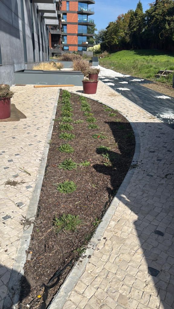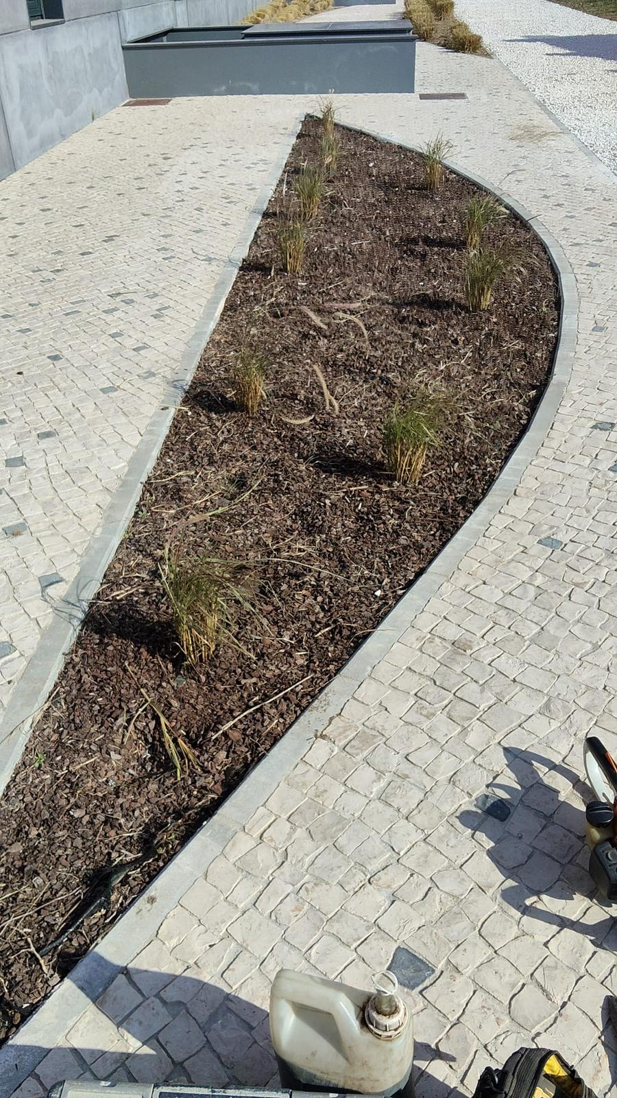 Limpeza de canteiros e construção de novo canteiro em pedra